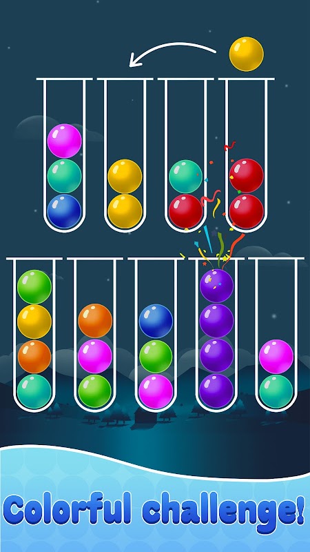 لغز فرز الكرات - فرز الألوان هي لعبة ألغاز ممتعة ومليئة بالتحديات. مهمتك هي فرز الكرات الملونة في الأنابيب حتى تصبح جميع الألوان في الأنبوب نفسه. لعبة مريحة ومليئة بالتحديات لتدريب عقلك!