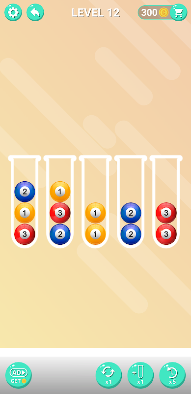 • اضغط على أي أنبوب لتحريك الكرة الموجودة أعلى الأنبوب إلى أنبوب آخر.