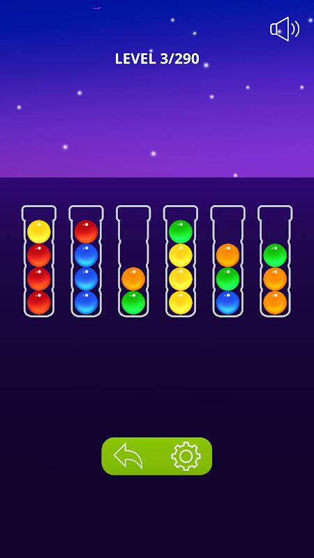 لعبة "فرز الكرات" هي لعبة ألغاز بسيطة، لكنها مريحة للغاية ومليئة بالتحديات. بفرز جميع الكرات لجعل جميع الأنابيب مليئة بنفس ألوان الكرات، ستفوز.