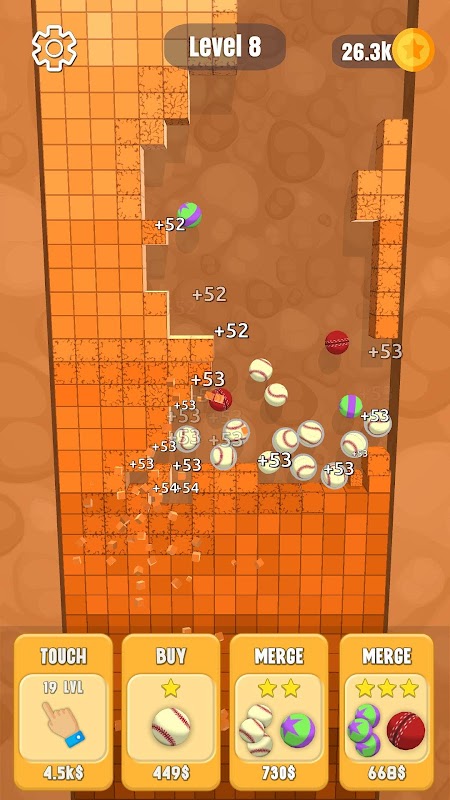 لعبة خاملة مضحكة تتعلق بترقية الكرات والحفر بأعمق ما يمكنك: احصل على مكافآت للمضي قدمًا في طريقة اللعب.