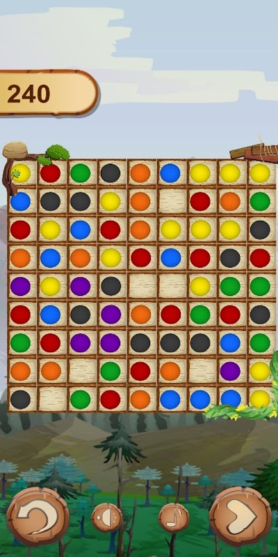 • If you stack four balls with the same color in one line (horizontal, vertical or diagonal), the line will disappear, and you gain 10 points for each eliminated ball.