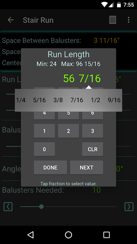 لكمة في الدرج والدرابزين الأبعاد، واختيار التكوين، وهذا التطبيق يوفر لك الملل حساب التباعد درابزين. سبحان الله.