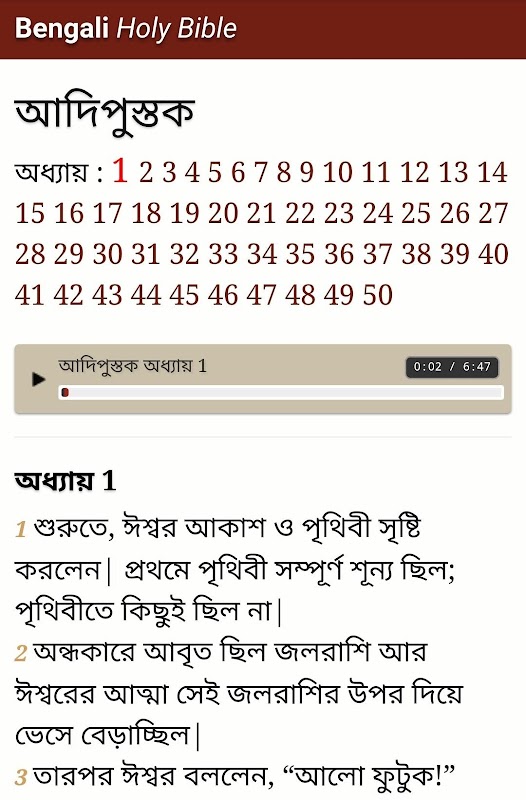 العمل دون اتصال ، وقراءة دون الوصول إلى الإنترنت. قراءة حتى من دون الوصول إلى الإنترنت الأخرى لا يمكن أن الكتاب المقدس إلى ذلك ، حتى تتمكن من التمتع التطبيق المجاني البنغالية الكتاب المقدس مجانا حاليا ، البنغالية والإنجليزية ثنائية اللغة الكتاب المقدس الصوت غير متصل ، في كل مكان.