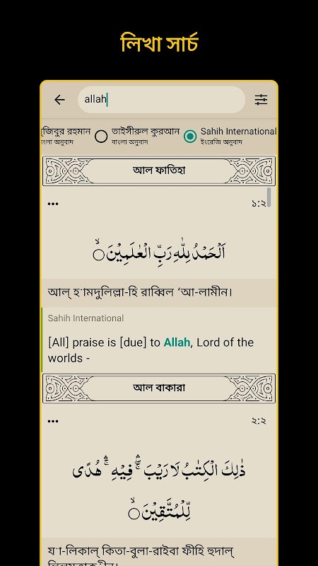 • الترجمة البنغالية (বায়ান، মহিউদ্দিন খান، তাইসিরুল কুরআন এবং মুজিবুর রাহমান)