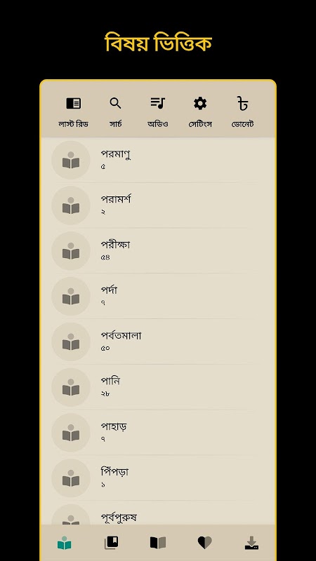 • قائمة بجميع أسماء السورة باللغة البنغالية والعربية.