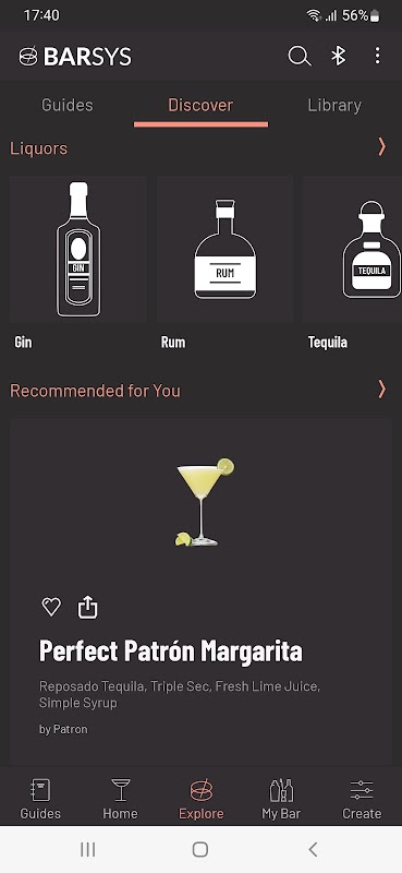 قم بصب الكوكتيلات المفضلة لديك بنقرة زر واحدة. يتزامن تطبيق Barsys Coaster مع جهاز Barsys Coaster المقابل ، مما يتيح للمستخدمين صب كوكتيلاتهم الخاصة في منازلهم. يختار المستخدمون ببساطة الكوكتيل الذي يرغبون في صنعه من المكتبة الواسعة واتبع الإرشادات خطوة بخطوة على شاشتهم. يستشعر Coaster مقدار السائل الذي تمت إضافته ، مما يؤدي إلى تغيير لون الأنوار للإشارة إلى وقت البدء والتوقف عن سكب كل مكون.