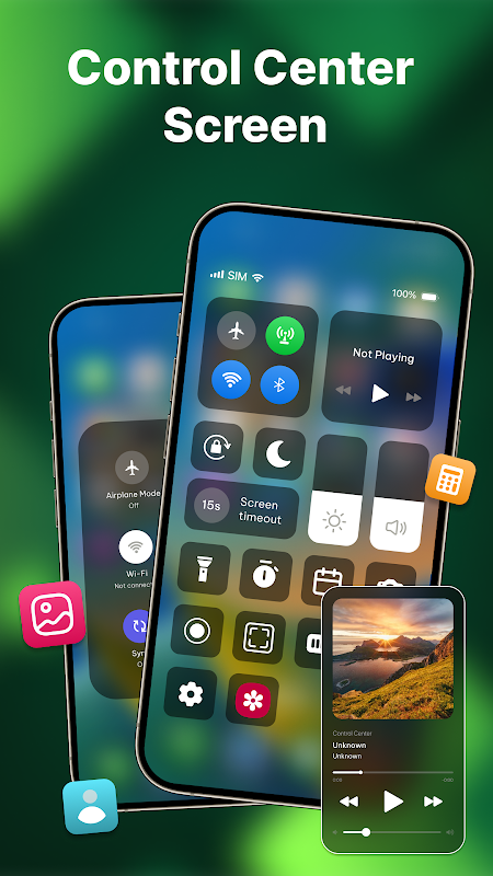 🌈 اختر وخصص خلفية مركز التحكم الخاص بك بألوان أو صور مختلفة من معرض الصور الخاص بك.