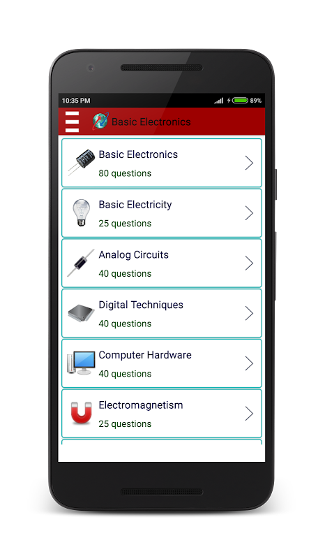 يغطي التطبيق موضوعات مختلفة من الهندسة وتكنولوجيا الالكترونيات مع مساعدة من الاختبارات.