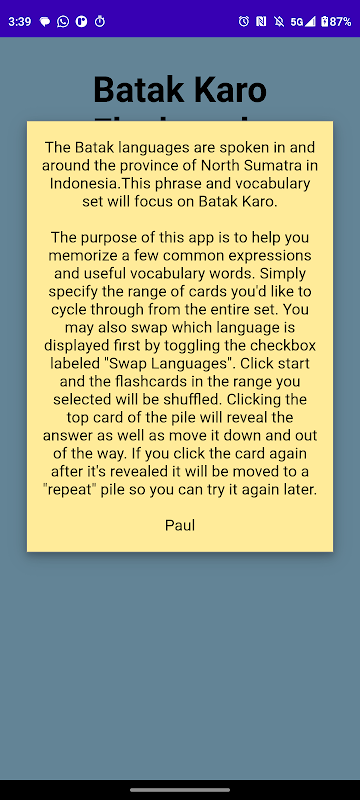 لاستخدام التطبيق، ما عليك سوى تحديد نطاق البطاقات التي ترغب في التنقل بينها من المجموعة بأكملها. يمكنك أيضًا تبديل اللغة المعروضة أولاً بتفعيل مربع الاختيار "تبديل اللغات". انقر على "ابدأ" وسيتم خلط البطاقات التعليمية ضمن النطاق الذي حددته. سيؤدي النقر على البطاقة العلوية من الكومة إلى كشف الإجابة وتحريكها للأسفل وإبعادها عن الطريق. إذا نقرت على البطاقة مرة أخرى بعد كشفها، فسيتم نقلها إلى كومة "التكرار" لتتمكن من تجربتها مرة أخرى لاحقًا.
