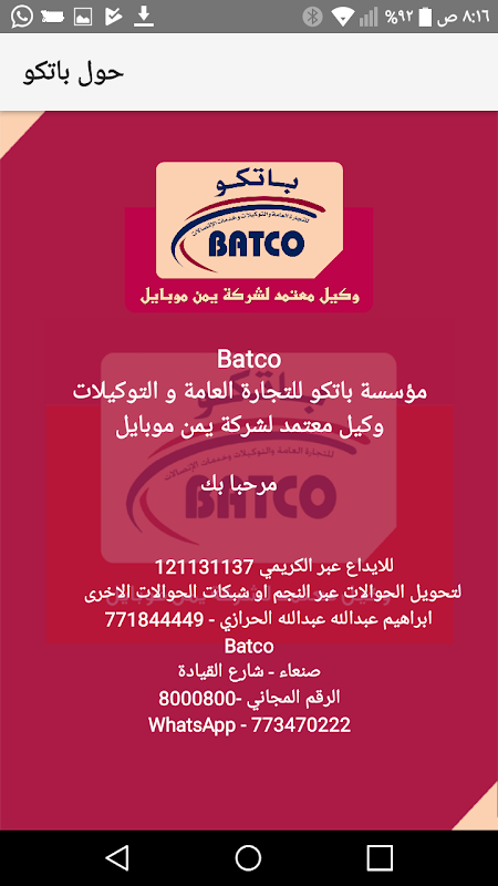 تطبيق باتكو لخدمات نقاط البيع تحصيل وتسديد باقات الانترنت ليمن موبايل