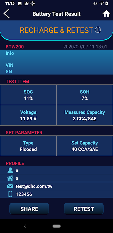 يدعم فحص VIN & Battery S / N