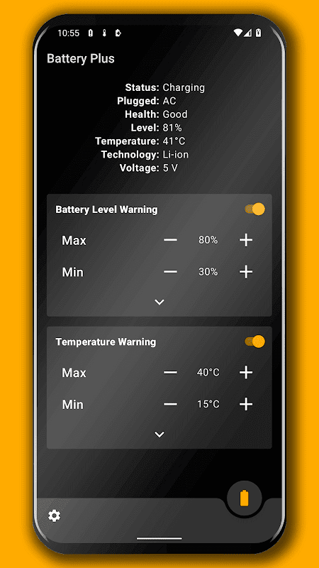 أحد التطبيقات التي يمكن أن تساعد في إطالة عمر البطارية والحفاظ على البطارية في حالة صحية. من خلال هذا التطبيق ، يمكنك تعيين حدود الشحن ودرجة الحرارة المفضلة لديك وسيتم إخطارك بمجرد الوصول إلى الحدود المفضلة. يتميز Battery Plus بتصميم بسيط وواجهة سهلة الاستخدام ، ولا توجد وسيلة للتحايل أو ميزات غير ضرورية. قم بتثبيت Battery Plus وسيقوم التطبيق بالعمل.