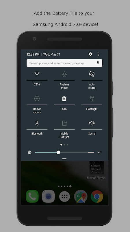 This is a custom Battery Tile for the Android Quick Settings Panel. Not all devices come with this Tile (such as the Galaxy S7) and this tile has a few more features such as: