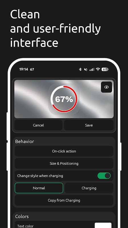 تم تصميم أداة البطارية لدينا لتكون أكثر من مجرد رقم على شاشتك. إنها أداة ألوان يمكنك ضبطها بكل تفاصيلها. من عرض مستوى الشحن إلى الخط والخلفية والتباعد والحجم - أنت من يقرر الشكل والمظهر.