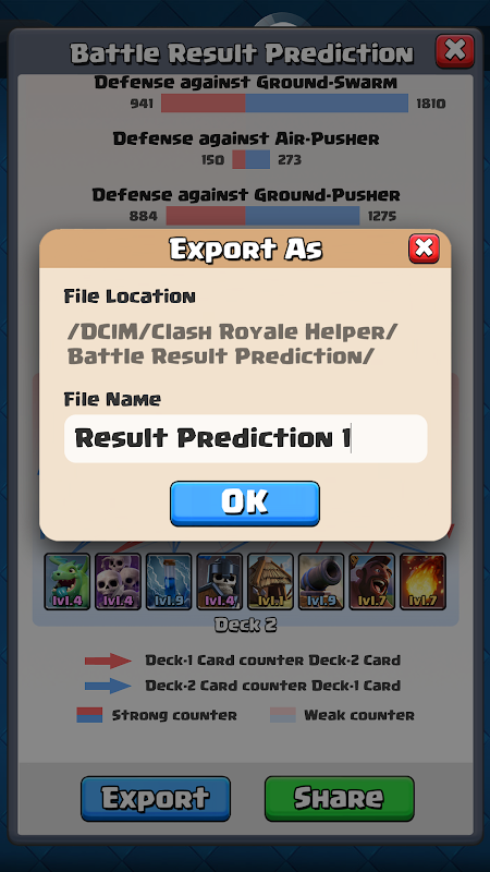 معركة نتيجة لتوقع نتائج مفيدة بشكل خاص بالنسبة لك لدراسة ومقارنة العلاقة بين مكافحة اثنين من الطوابق صراع رويال. ومن المفيد أيضا كنت في بناء سطح السفينة المضادة للفوز على أصدقائك، الاصحاب عشيرة أو المنافسين في المباريات الودية.