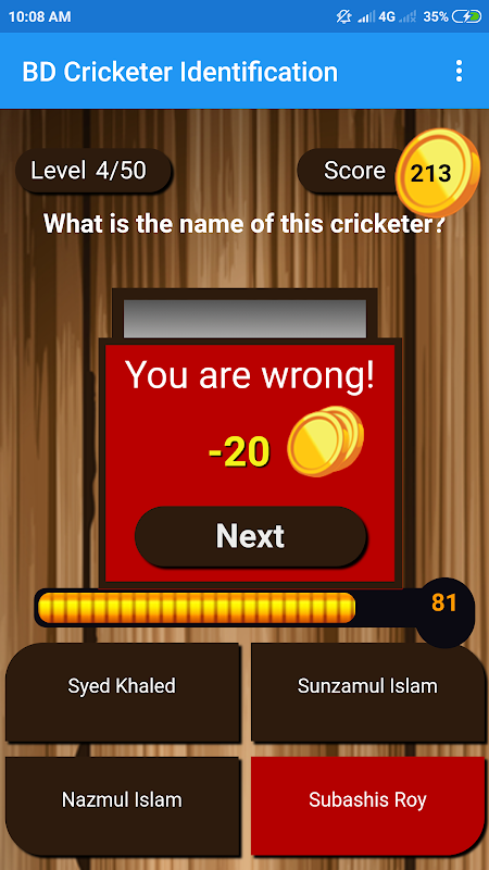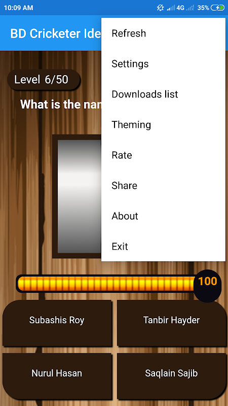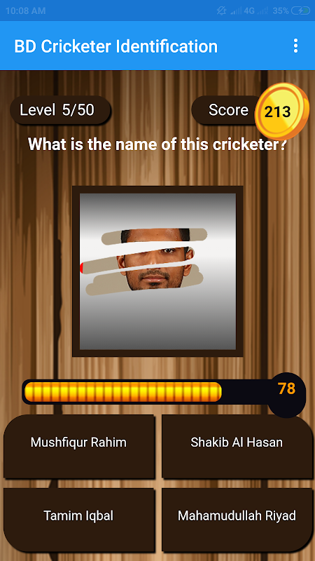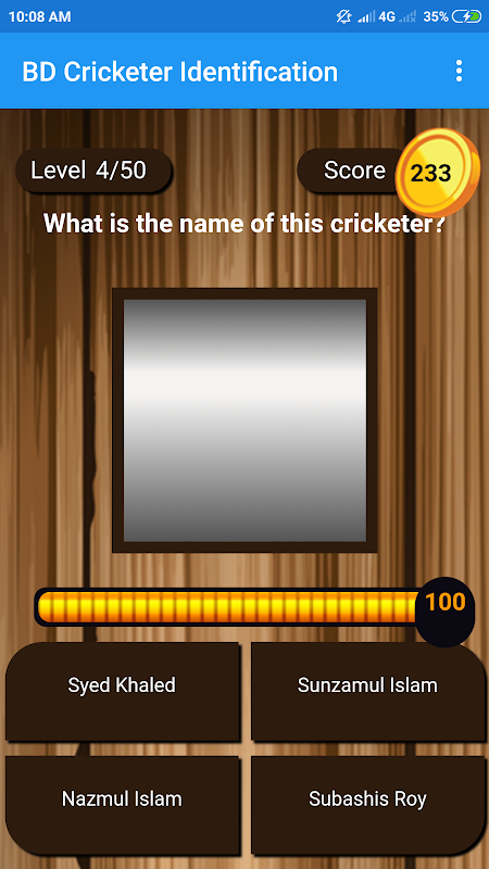 This game is made for the Bangladeshi cricket fun, who know the Bangladeshi player best. You have to scratch on picture to identify the Bangladeshi cricketer. The more you scratch, the less will be the score. At the start the picture is hidden. It can be revealed by scratching it with your finger. The less you reveal before you guess the correct answer, the more points you get.