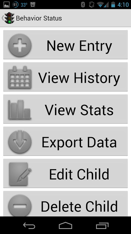 Behavior Status is aimed at Parents and Teachers alike. Use it to record the daily actions of your child or an entire classroom. Childhood behavior is easily recorded using the simple Green/Yellow/Red stoplight mechanism currently employed by many schools, day cares and parents alike. Also works great for use in teaching kids with Autism or ADD/ADHD.