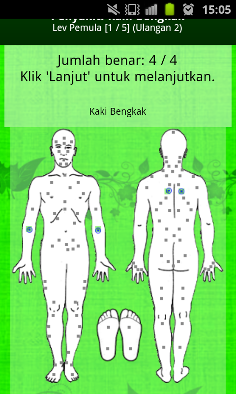 Pelatihan berguna untuk membantu pengguna dalam menghafal titik-titik bekam. Pelatihan diberikan dalam bentuk permainan tebak titik dengan model yang variatif dan berjenjang. Untuk memperjelas cara bermain dalam permainan ini, di sediakan menu bantuan.
