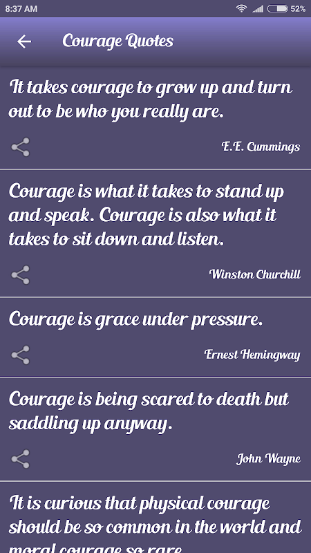 This app contains numerous quotes of various topics. Topics include Age, Anger, beauty, Business, Change, Children, Courage......etc.
