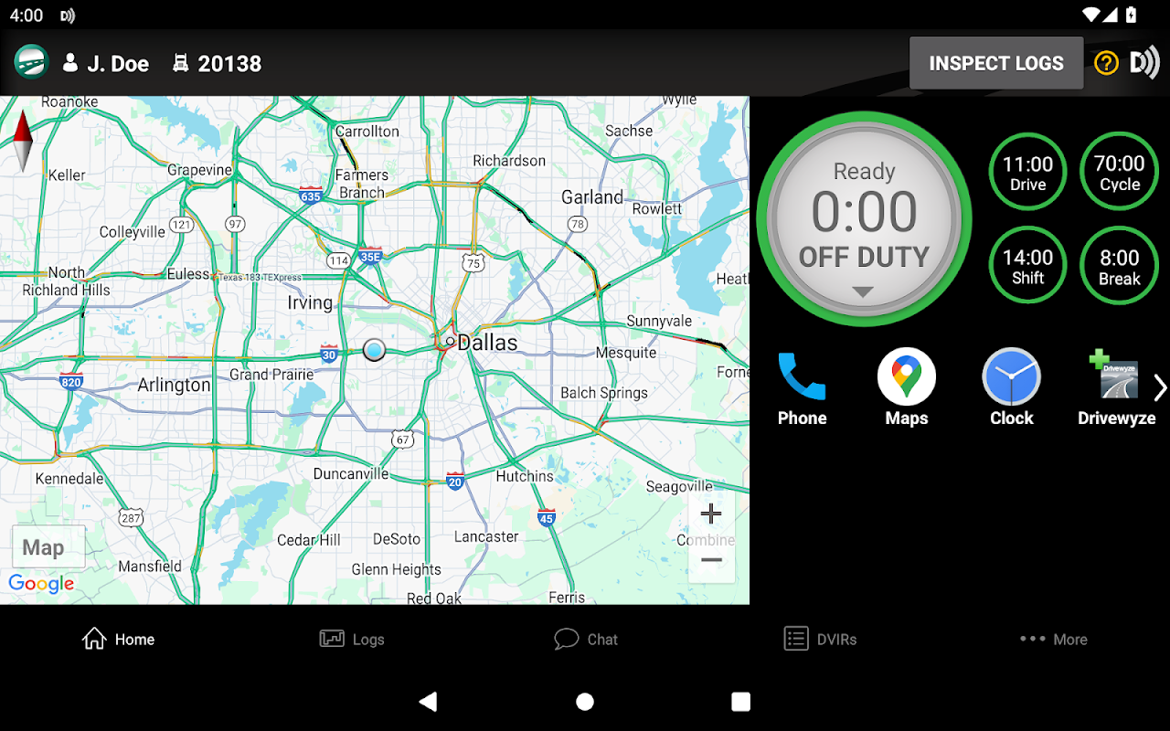 يعرض سجل ELD واضحًا وسهل القراءة ومتوافقًا مع اللوائح على الشاشة ليراجعه المفتشون. يحفظ السجلات والمستندات الداعمة في مكان واحد. اعرض سجلات السائقين، اطبعها، أرسلها بالبريد الإلكتروني أو الفاكس. أرسلها بسهولة إلى مسؤولي السلامة باستخدام الطرق المدعومة عند الطلب.