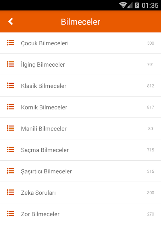 5.000 الألغاز المضحكة غير المتصلة بالإنترنت من 9 فئات وإجاباتها هنا. يمكنك قراءة الألغاز في أي فئة تريدها واسأل أصدقائك عن الألغاز التي ستسليك وتجعلك تضحك وتعلمك. يمكنك الاستمتاع بلحظات ممتعة باستخدام زر قراءة الألغاز العشوائية. حلت أحدث الألغاز وأطرف الألغاز وأحدث الألغاز مكانها في تطبيق الألغاز المثير للاهتمام. يجب أن تجرب تطبيق الألغاز المجاني لدينا للألغاز التركية المضحكة. تتوفر لك ألعاب اللغز والإجابات باللغة التركية. يمكنك لعب تطبيق لعبة الألغاز مع أصدقائك. يمكنك أيضًا مشاركة اللغز الذي تريده مع أصدقائك على المنصة الاجتماعية التي تريدها بنقرة واحدة. العب اللغز 2021