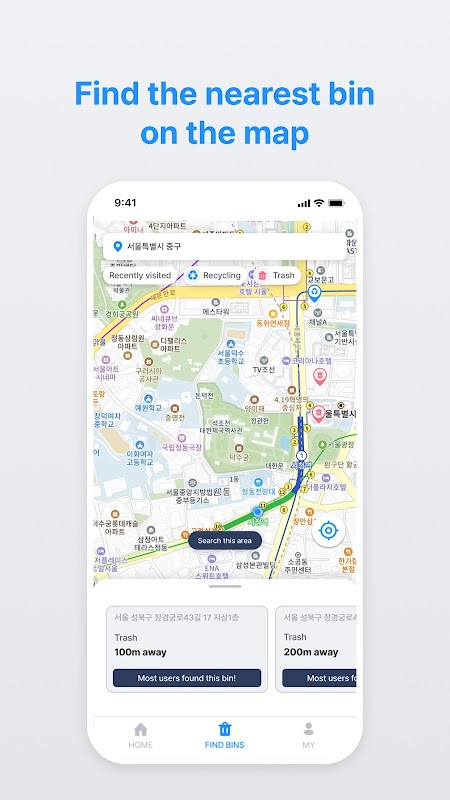 يرشدك BinVoyage إلى أقرب صندوق في سيول!