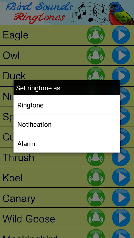 الطيور الأصوات نغمات تذكير التطبيق مع التنبيه 1.6