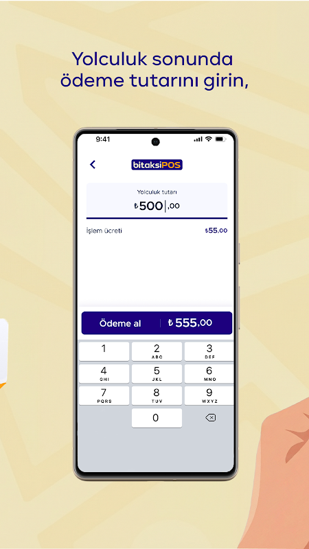 يُمكّن تطبيق BitaksiPOS سائقي سيارات الأجرة من تحويل هواتفهم إلى أجهزة نقاط بيع، مما يسمح لهم بقبول مدفوعات البطاقات اللاتلامسية في جميع رحلاتهم دون الحاجة إلى جهاز إضافي.