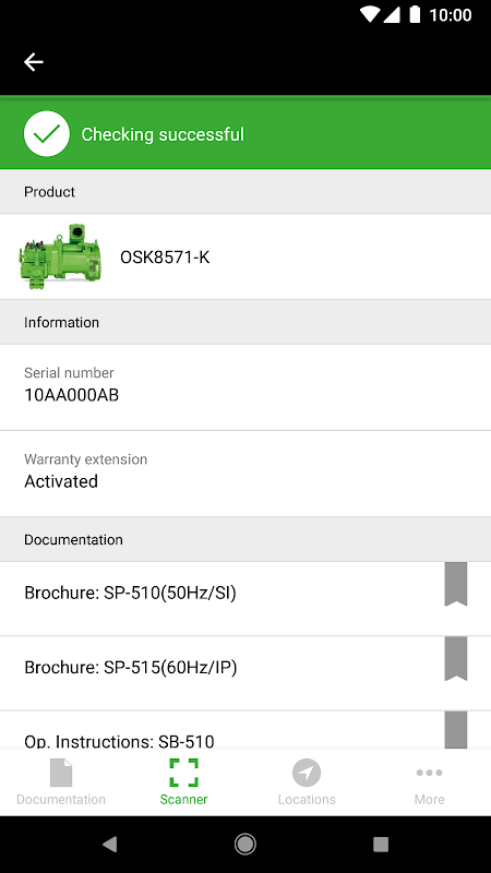 بالإضافة إلى ذلك ، يحتوي تطبيق BITZER SPOT على سلسلة كاملة من الوظائف المفيدة للمستخدمين. عند مسح رمز الاستجابة السريعة ضوئيًا ، يعرض التطبيق تلقائيًا الوثائق الشاملة للمنتج المعني ، ويتم فرزها حسب مجموعات الموضوعات. يمكن للمستخدمين إضافة هذه المعلومات إلى المفضلة لديهم ، ويمكن تنزيلها ويمكن مشاركتها. حتى في وضع عدم الاتصال ، لا يتعين على عملاء BITZER الاستغناء عن هذه المستندات. بفضل المرشح البديهي للاستخدام ، يمكن العثور على كل وثيقة بسرعة وسهولة.