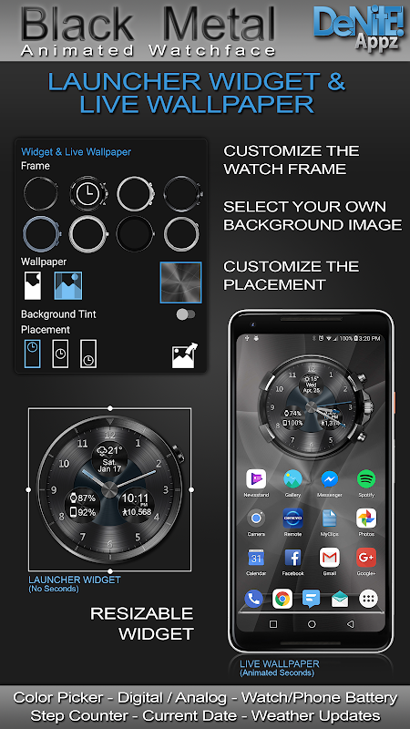 ✔ ساعة رقمية و / أو تناظرية قابلة للتخصيص
