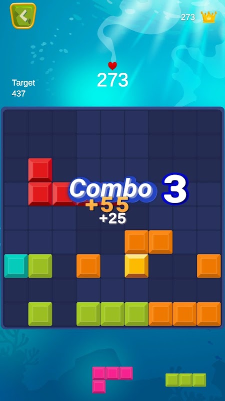 في لعبة ألغاز المكعبات هذه، ستختبر أيضًا طريقة لعب COMBO الجديدة والأصلية. اسحب الكتل وأسقطها على اللوحة ، واملأ صفًا أو عمودًا لإكمال الإزالة ، وسيؤدي مسح صفوف أو أعمدة متعددة مرة واحدة إلى رسوم متحركة رائعة للإقصاء ونقاط إضافية.