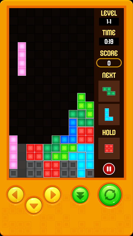 - Create full lines on the grid vertically or horizontally to break bricks.