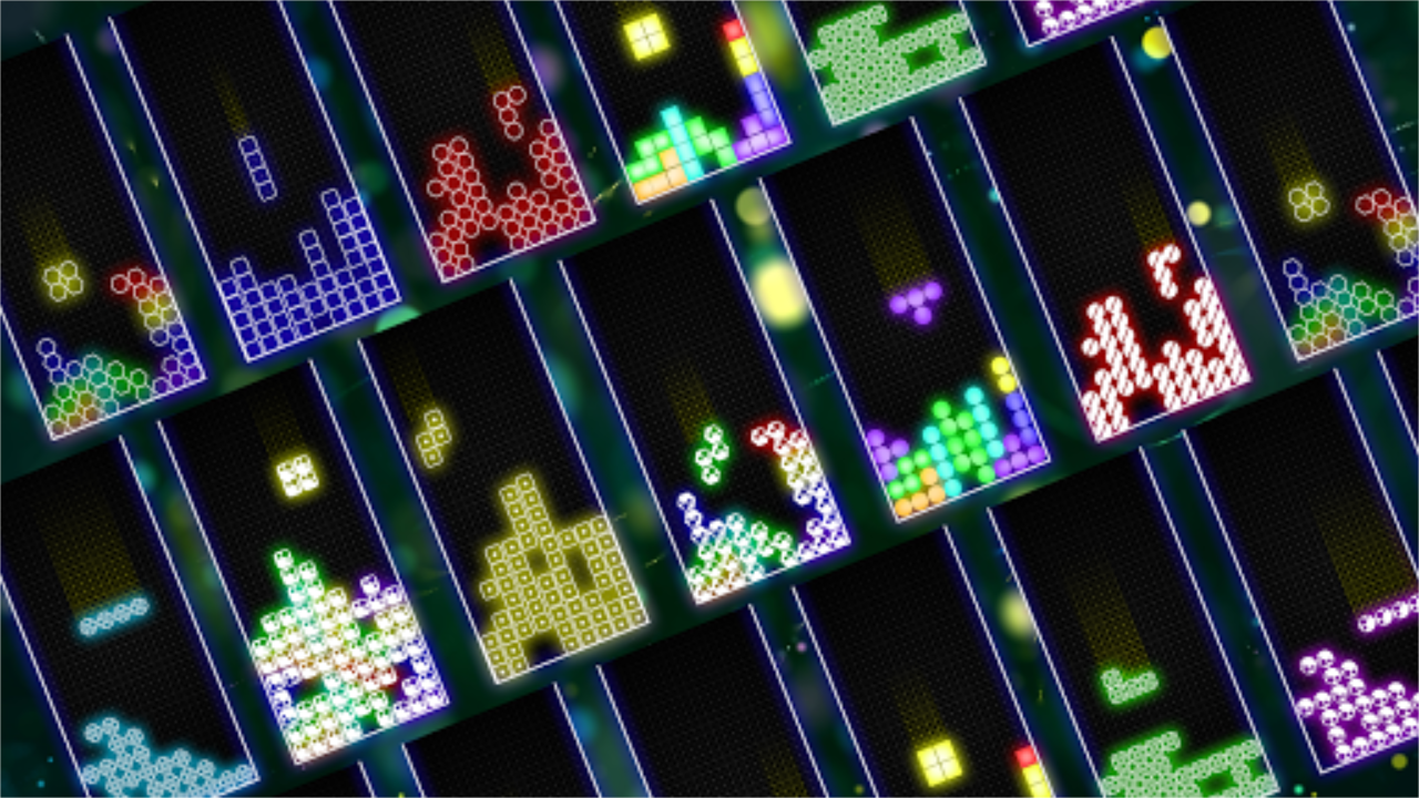 قم بترتيب الكتل لإنشاء وتدمير الخطوط الرأسية والأفقية ومنع الكتل من ملء الشاشة في لعبة ألغاز النيون الملونة هذه.