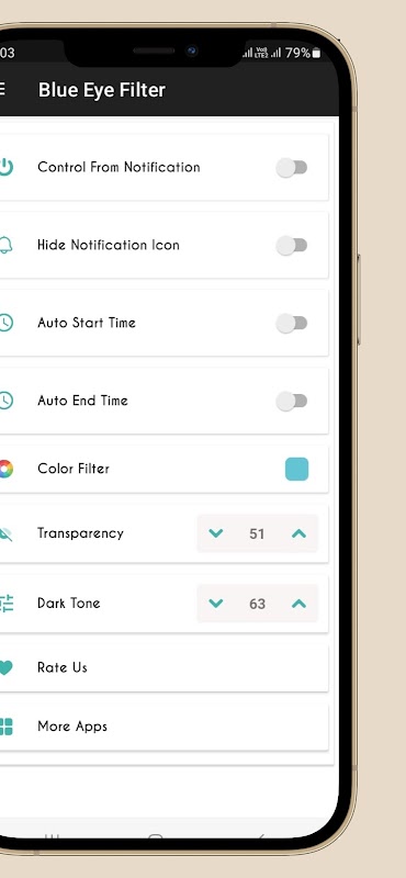 يحتوي التطبيق على خيارات تشغيل وإيقاف تلقائية لفلاتر الشاشة المظلمة ، مما يسهل عليك التهيئة مرة واحدة فقط ، والحماية ، والعناية بعينيك.