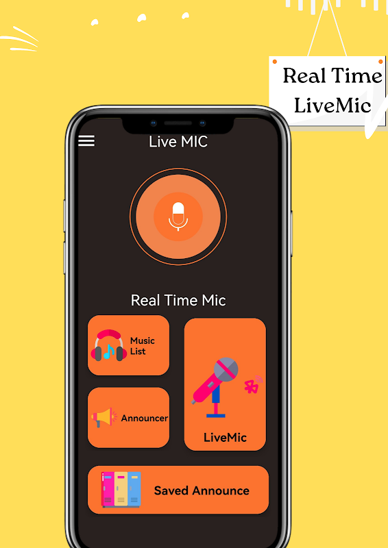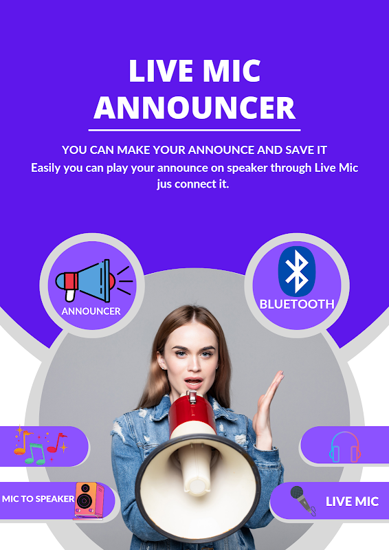 الميكروفون الحي سيجعل هاتفك المحمول تمامًا مثل الميكروفون وميكروفون الإعلان .. إنه يحول صوتك بمستوى صوت مرتفع مثل مكبر الصوت ، فقط قم بتوصيل مكبر صوت Bluetooth أو كابل Aux.