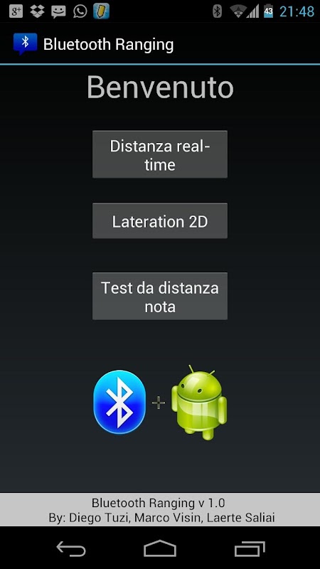 The application's aim is to demonstrate how to exploit technologies created with different purposes, to obtain location information: in this case we're using BlueTooth tecnology.