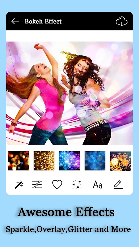 Auto background eraser, awesome bokeh effects, glitters, stickers, after focus