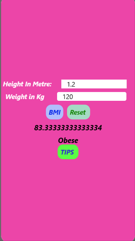 يستخدم للتحقق من مؤشر كتلة الجسم للشخص وما إذا كان الشخص يتمتع بصحة جيدة أم لا. تقديم نصائح لخسارة الوزن وزيادته.