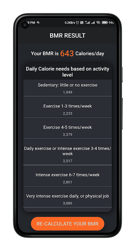 This app ensure accurate BMI and BMR results as per your input age, gender and height.