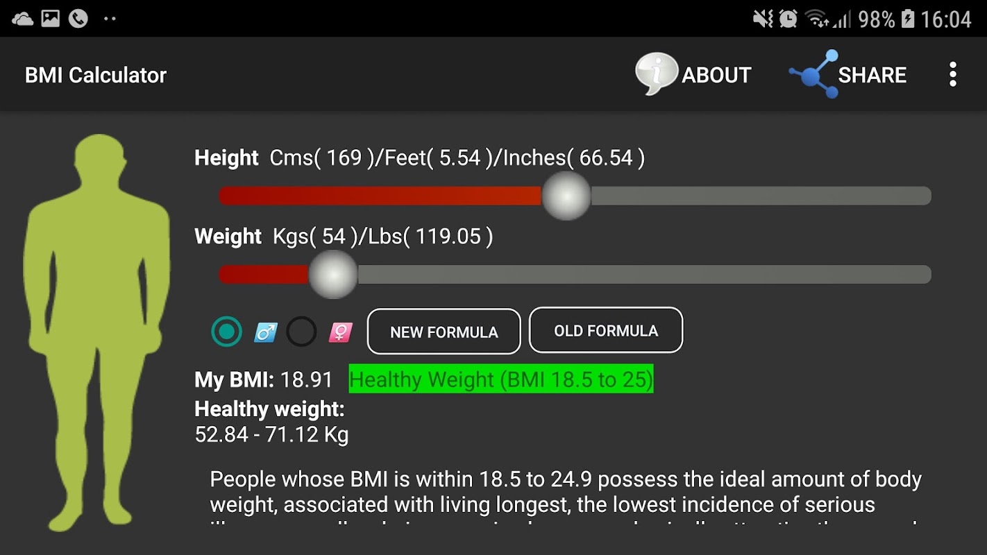 بقسمة وزن الشخص بالكيلوغرام من قبل طولهم بالأمتار أنه من الممكن التوصل إلى تقدير الدهون في الجسم أن الفرد.