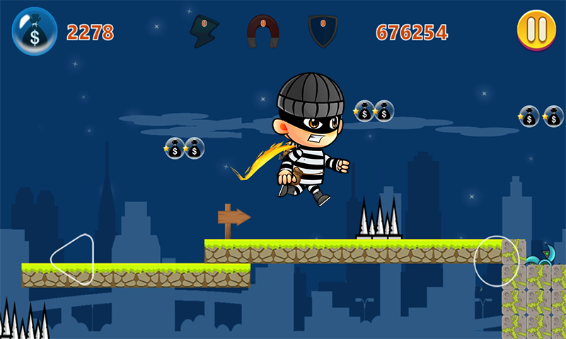 Bob the robber is going to rob people and the bank in his city. But There are many many crises in his way run like police, the cop in car police and more.