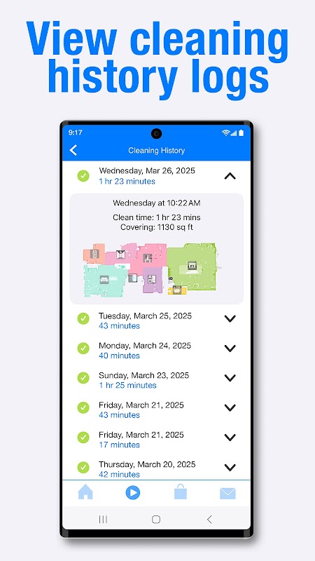 • قم بمراجعة النشاط السابق لروبوتك من خلال سجلات التاريخ التفصيلية