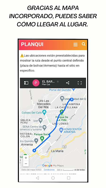 Planqui Co es una plataforma en donde se muestran diferentes sitios y eventos en las ciudades del departamento del Quindío y sus alrededores. Los usuarios pueden filtrar entre las diferentes categorías como lo son comida, entretenimiento, pasadías y eventos. Así mismo pueden buscar los precios que más se adapten a su disponibilidad de pago.