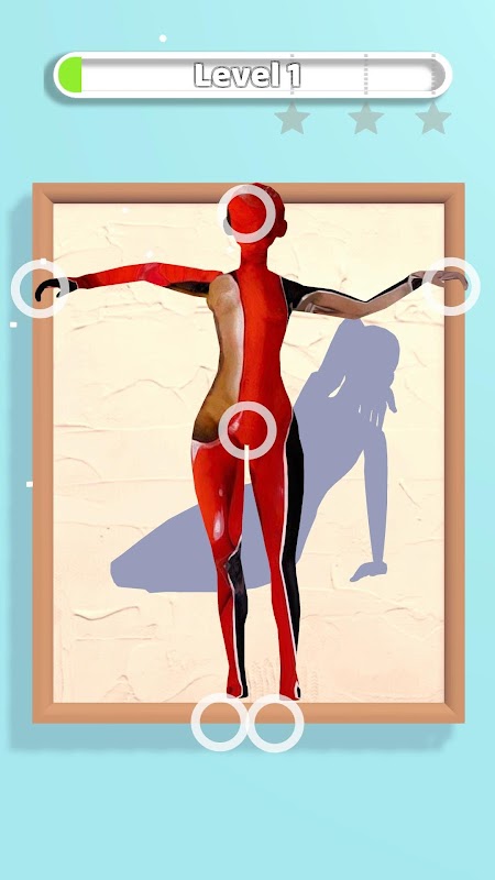 The game showcases a full body where you have to move each body part according to the silhouette behind it. The hidden image will be revealed once you move the body parts accordingly.
