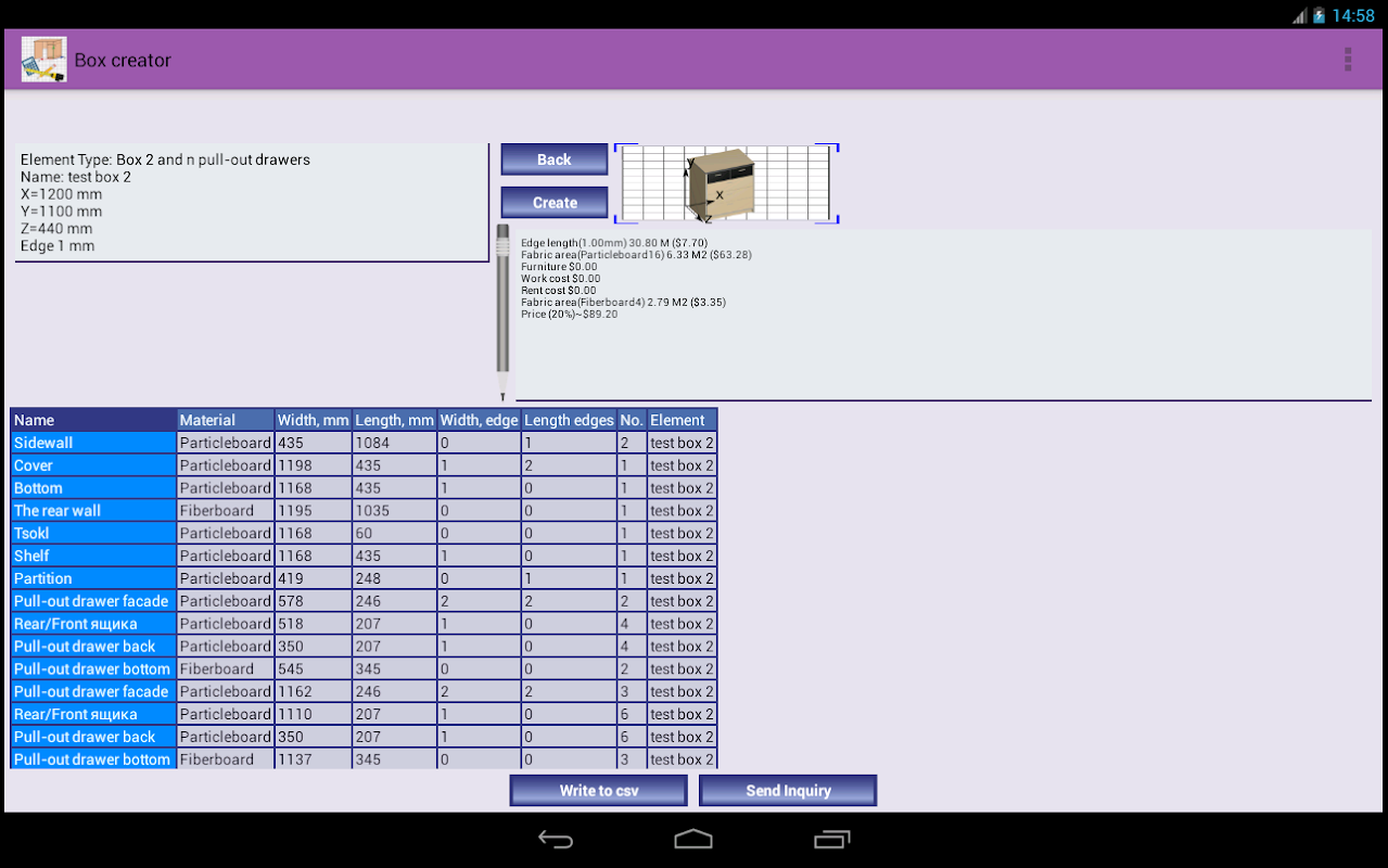 تطبيق بسيط وسهل لإنشاء العناصر القياسية صناديق الأثاث اللوح، مثل المطبخ على أحجام الفردية.