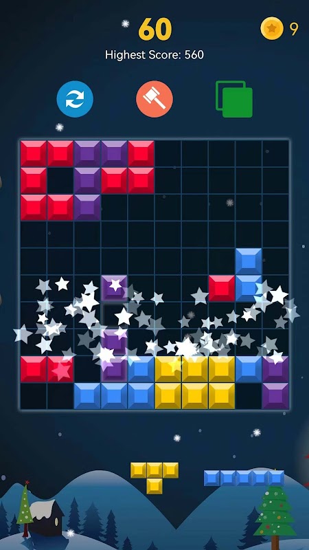 "Box Crush" is a leisure game with a new classic game playing method. It is an evolutionary version of the classic game Tetris. It follows the classic rules and is more cool than the traditional Tetris! The new drag elimination mode brightens people's eyes! This is a box elimination casual game that can't be missed! Drag the three randomly generated boxes at the bottom of the interface to the grid, and arrange the complete rows and columns to eliminate and score. When there is no place to put the box, the game is over.