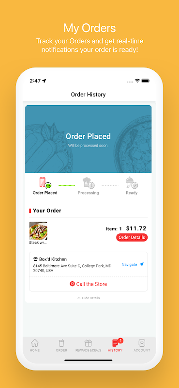 تتبع طلباتك واحصل على إشعارات في الوقت الفعلي أن طلبك جاهز!