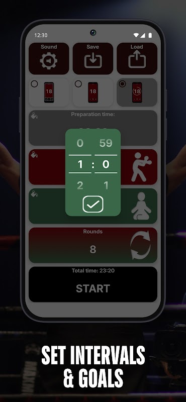 - إعداد وقت التحضير ، ووقت الجولة ووقت الراحة ، وعدد الجولات