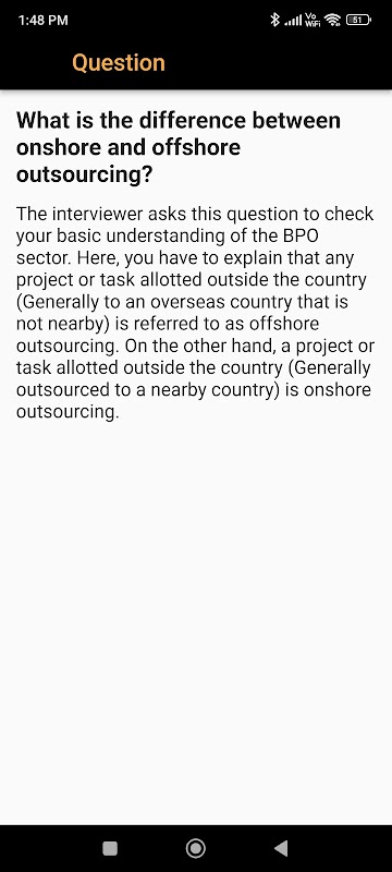 أسئلة مقابلة BPO: لأولئك المهتمين بشكل خاص بـ BPO ، يتضمن تطبيقنا قسمًا مخصصًا به أكثر من 100+ سؤال يركز على مفاهيم BPO. تعميق معرفتك وتعزيز ثقتك في سيناريوهات مقابلة BPO.