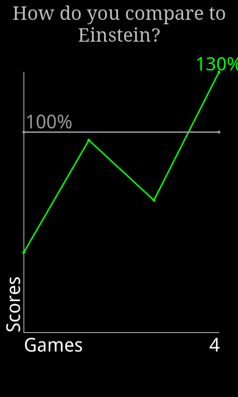 هذا التطبيق هو العرضية للتحدي للغاية تقييما آينشتاين. هذه المرة يمكنك اختبار مدى الدماغ يتم معالجة الأرقام. مرة أخرى، يمكنك مقارنة نفسك لألبرت أينشتاين (أو ما يمكن توقعه منه، نظرا عبقريته على مستوى الذكاء). يمكنك الفوز حتى نتيجة أينشتاين، إذا كنت جيدة بما فيه الكفاية.